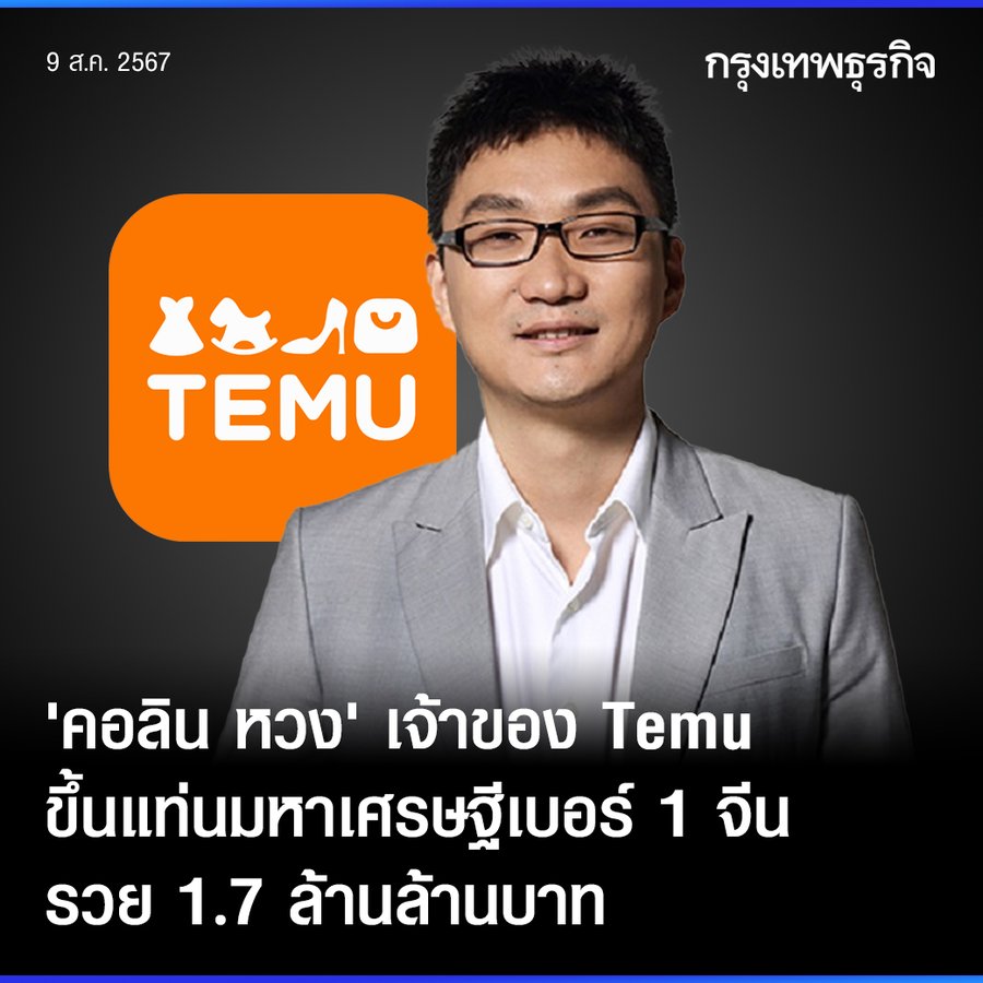 คอลิน หวง (Colin Huang) อายุ 44 ปี… pic.twitter.com/JuPV5zZKnk— กรุงเทพธุรกิจ (@ktnewsonline) August 9, 2024