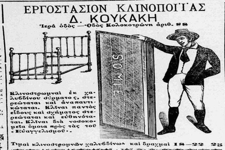 Αυτός ήταν ο Δημήτριος Κουκάκης, ένας γνωστός εργοστασιάρχης της εποχής. Το εργοστάσιό του κατασκεύαζε μεταλλικά κρεβάτια και λειτουργούσε πριν από τον πόλεμο στην οδό Κολοκοτρώνη 88, κατασκευάζοντας σκελετούς κρεβατιών από χάλυβα. Τα σιδερένια κρεβάτια που παρήγαγε είναι αυτά που όλοι έχουμε δει είτε σε ταινίες είτε από κοντά.
