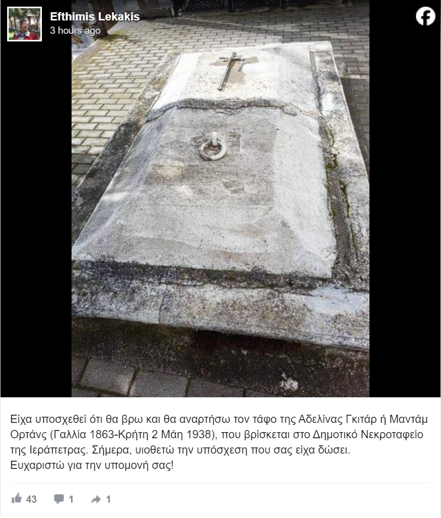 Κρήτη: Η θρυλική ιερόδουλη, Μαντάμ Ορτάνς, ο Ζορμπάς και ο τάφος της – Περισσότερες από οκτώ δεκαετίες μετά τον θάνατο μιας γυναίκας που έπαιξε σημαντικό ρόλο στην ιστορία της Κρήτης, ανακαλύφθηκε ο τάφος της Αδελίνας Γκιτάρ, γνωστής ως θρυλικής Μαντάμ Ορτάνς.