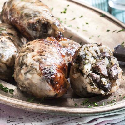 Κάθε φορά που ετοιμάζουμε αυτόν τον παραδοσιακό πασχαλινό μεζέ με κιμά και συκωταριά τυλιγμένο σε αρνίσια μπόλια και ψημένο πάνω σε κληματόβεργες, γίνεται κυριολεκτικά ανάρπαστος! Η πλούσια και ξεχωριστή γεύση του μένει αξέχαστη σε όσους τον δοκιμάσουν.