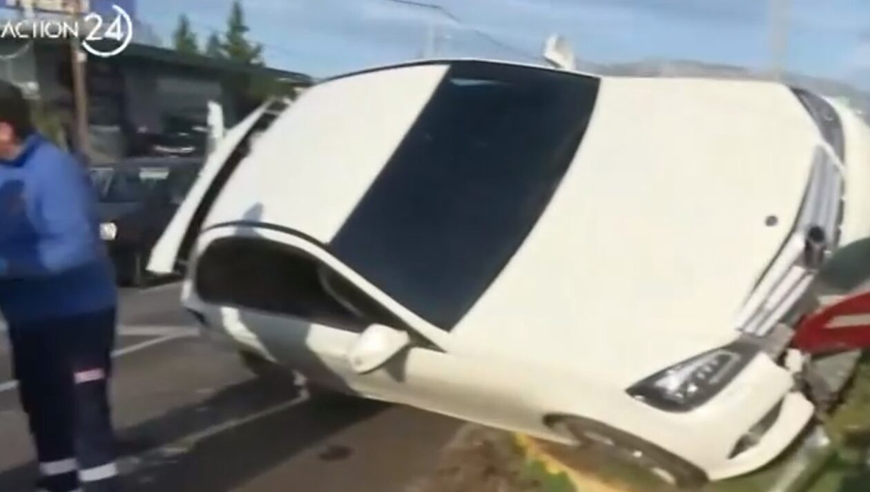 Όπως φαίνεται στο βίντεο, το ένα όχημα σχεδόν αναποδογύρισε όταν κατέληξε σε μια κολώνα, όμως οι καμπίνες των ΙΧ παρέμειναν άθικτες και για αυτό δεν τραυματίστηκαν οι οδηγοί.