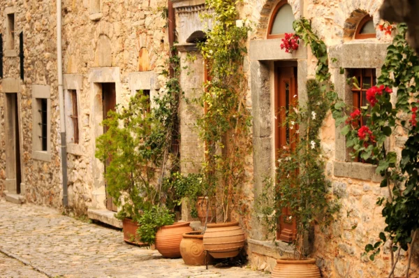 Χαρακτηριστικότερο παράδειγμα τα Μεστά. Ένα χωριό χτισμένο στην νοτιοδυτική πλευρά της Χίου μεστωμένο στην πέτρα και σε μια αλλόκοτη, περιπλεκτική, μα και γοητευτική διαρρύθμιση. Το ιστορικό χωριό της Χίου ανάγει την ίδρυση του κάπου στις αρχές του 12ου αιώνα μ.Χ. κατά την εποχή της Βυζαντινής Αυτοκρατορίας και μετά από ένα σύντομο, αλλά καθοριστικό, πέρασμα των Γενοβέζων, το νησί κατέληξε κομμάτι της Οθωμανικής Αυτοκρατορίας.