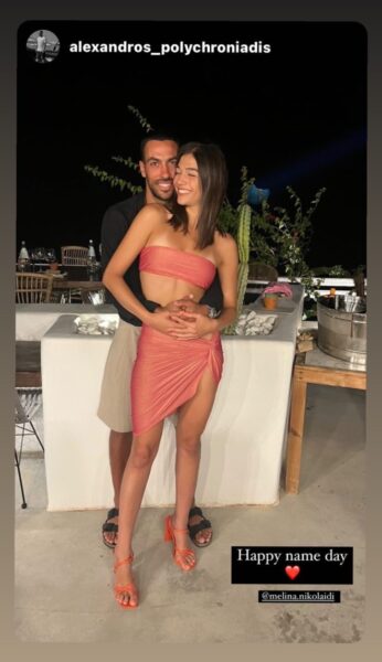 Ο personal trainer κι επιχειρηματίας δημοσίευσε ένα τρυφερό στιγμιότυπο στο οποίο ποζάρει κρατώντας αγκαλιά τη συντρόφό του, Μελίνα Νικολαΐδη, σε μια από τις βραδινές εξόδους τους το φετινό καλοκαίρι.