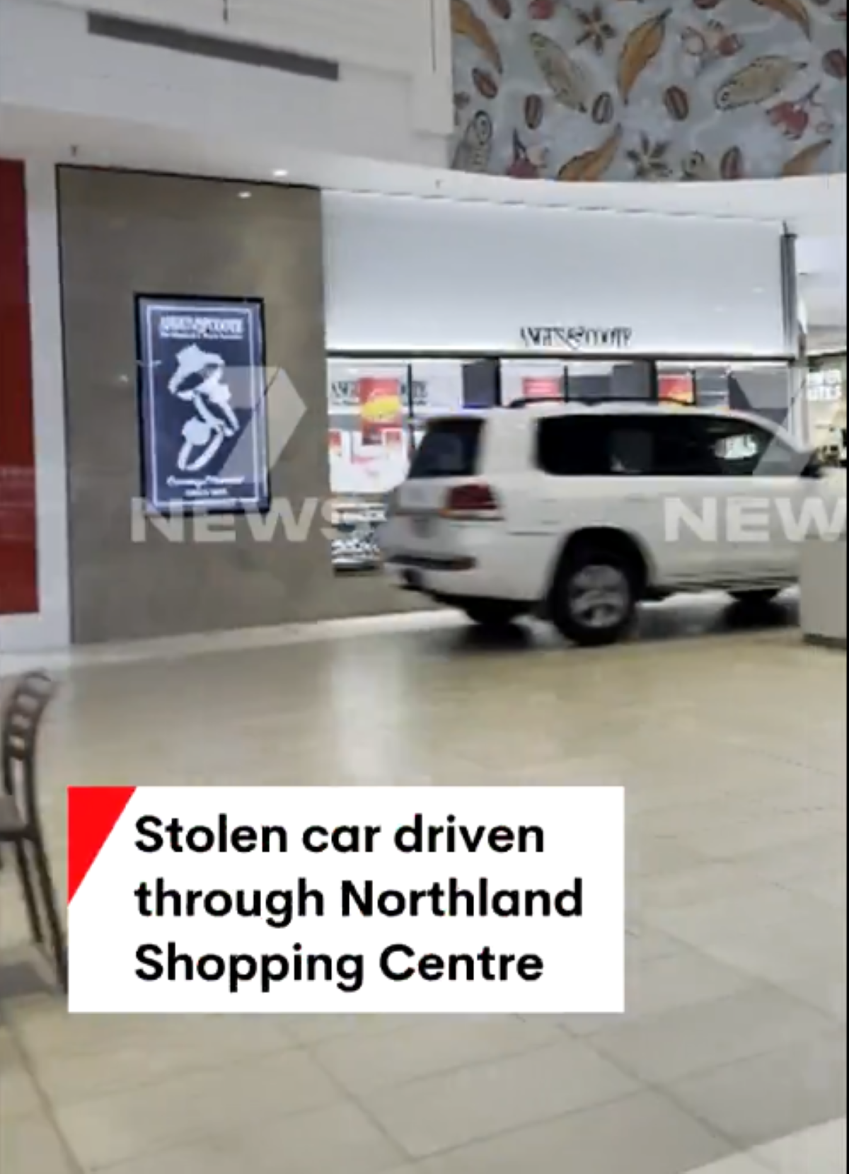 BREAKING: An allegedly stolen car has ploughed through Northland Shopping Centre during a wild police pursuit. The driver is still on the run. #breakingnews #carcrash #northland #melbourne #7NEWS pic.twitter.com/xTzqtMsVxa