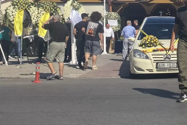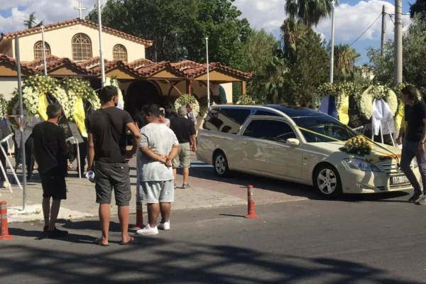 Η νεκροφόρα που μετέφερε τη σορό του 29χρονου φέρει κιτρινόμαυρες κορδέλες.