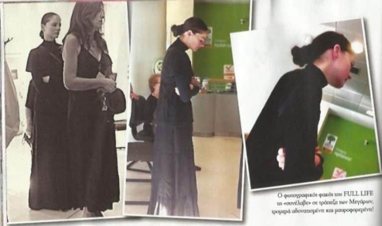 Το περιοδικό FULL LIFE την απαθανάτισε τον περασμένο Φεβρουάριο να φοράει μαύρα, να έχει κατάμαυρα μαλλιά και λιτό ντύσιμο, περιμένοντας στην ουρά σε κατάστημα της Αγίας Παρασκευής όπου πηγαίνει για να τυπώσει τα σχέδια στα κεντήματά της.