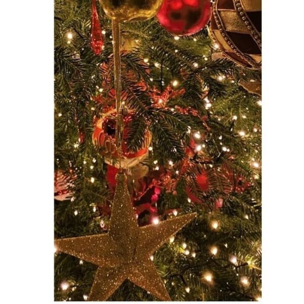 Όπως κάθε χρόνο, το δέντρο τους είναι παραδοσιακά στολισμένο με κόκκινα και χρυσά στολίδια.