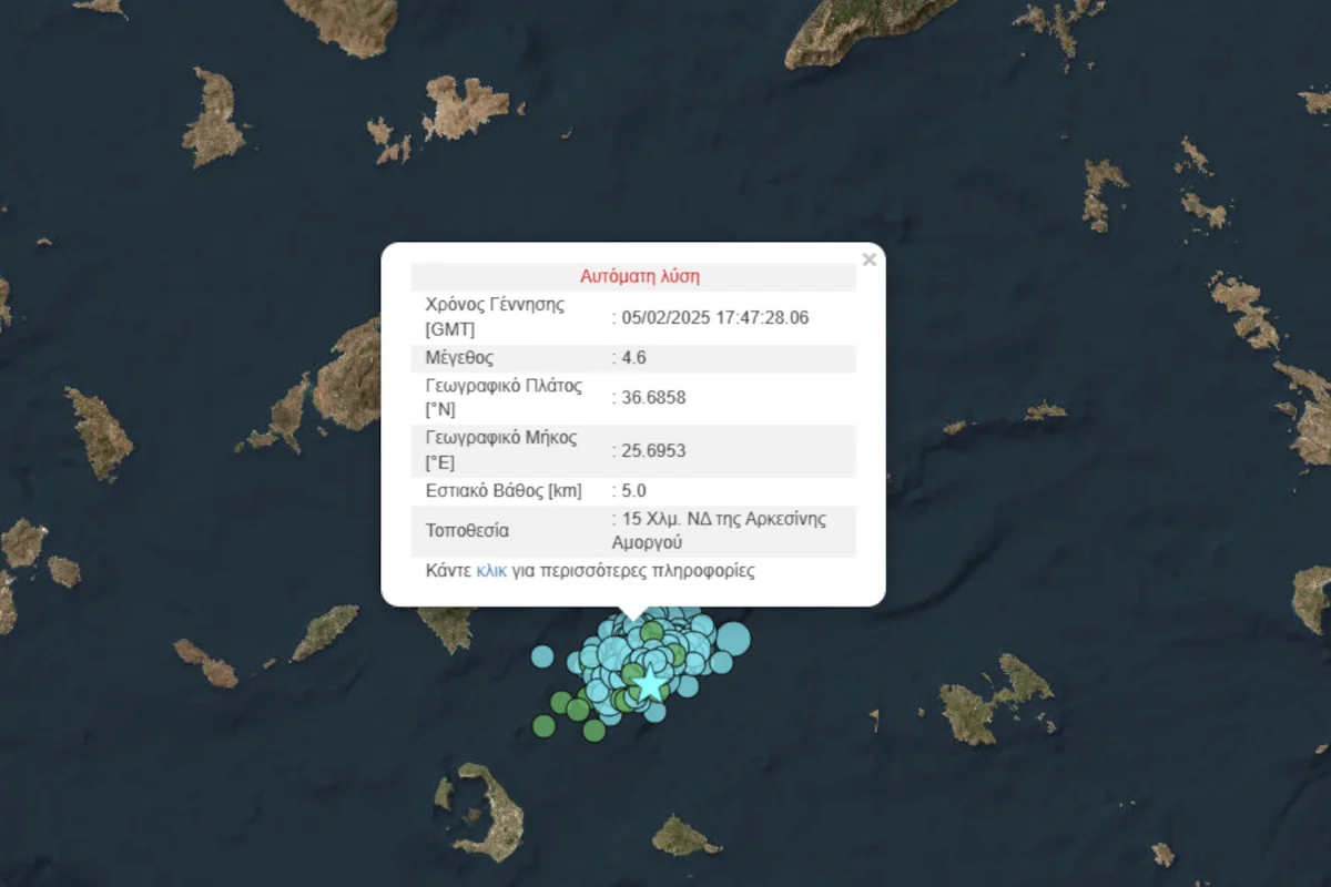 Συγκεκριμένα, στις 19:45, το Γεωδυναμικό Ινστιτούτο κατέγραψε σεισμό μεγέθους 4,3 Ρίχτερ, με επίκεντρο 15 χιλιόμετρα νότια-νοτιοανατολικά της Αρκεσίνης στην Αμοργό και εστιακό βάθος 5 χιλιομέτρων.