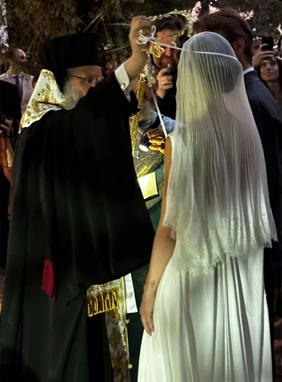 Από τον θρησκευτικό γάμο, μόνο ένα στιγμιότυπο διέρρευσε, απαθανατίζοντας τη στιγμή της αλλαγής των στεφάνων από τον ιερέα. Η νύφη, Malù dalla Piccola, εντυπωσίασε τους παρευρισκόμενους με τη νυφική της δημιουργία, η οποία ήταν αιθέρια και κομψή, συμπληρωμένη από ένα εντυπωσιακό πέπλο στα μαλλιά της.