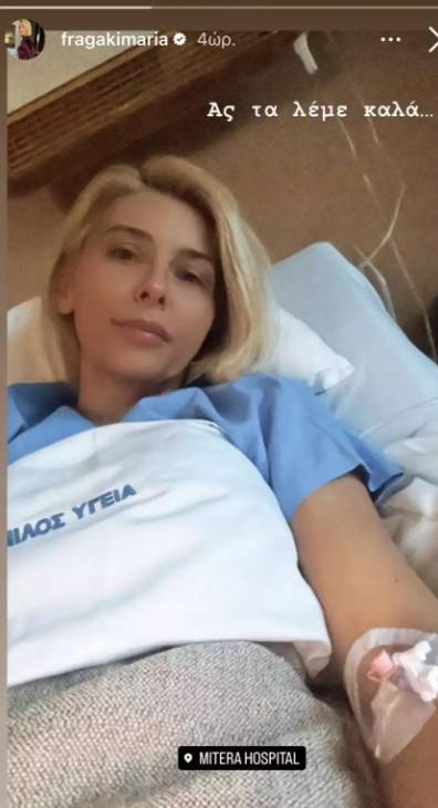 Η Μαρία Φραγκάκη όπως θα δεις στο στιγμιότυπο που δημοσίευσε στα Instagram Stories της, είναι ξαπλωμένη στο κρεβάτι του νοσοκομείου, ενώ πάνω στη φωτογραφία γράφει: «Ας τα λέμε καλά…».