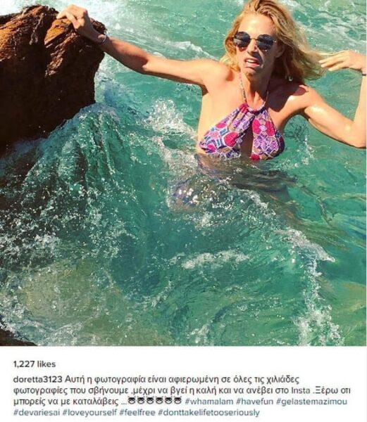 Η φωτογραφία, με την Ντορέττα να ποζάρει στα βράχια και να έχει μια έκφραση αηδίας… Είναι τόσο αληθινή και τόσο ανθρώπινη. Η Ντορέττα, αντί να τη σβήσει, τη μοιράζεται με τους ακολούθους της, δείχνοντας την ανθρώπινη πλευρά της… Και τονίζοντας τον πίεση που όλοι νιώθουμε για την τέλεια εικόνα στα social media.