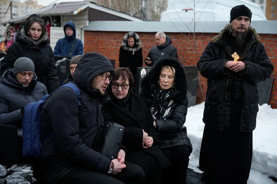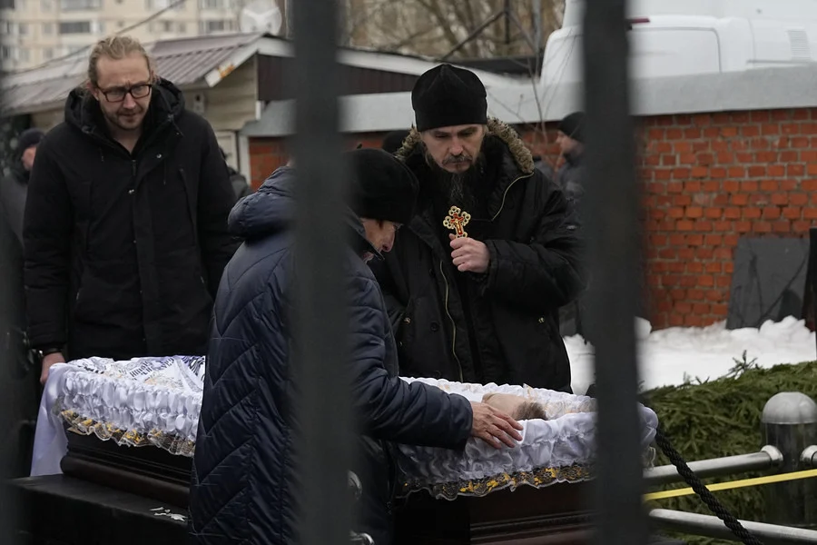Σε βίντεο που μεταδόθηκε από το νεκροταφείο Μπορίσοφκσκογιε, η μητέρα του Ναβάλνι, Λουντμίλα, και ο πατέρας του, Ανατόλι, έσκυψαν πάνω από το ανοιχτό φέρετρό του για να τον φιλήσουν για τελευταία φορά, ενώ μια μικρή ομάδα μουσικών έπαιζε μουσική.