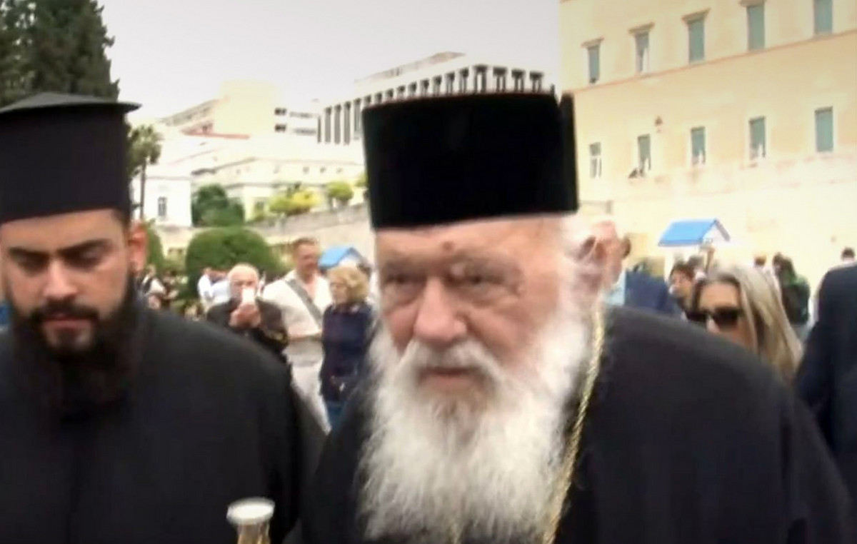 Ο Πάνος Ρούτσι, εμφανώς καταβεβλημένος, σηκώθηκε όρθιος με τη βοήθεια των ανθρώπων που βρίσκονται στο πλευρό του. Είχε μια σύντομη και χαμηλόφωνη συνομιλία με τον Αρχιεπίσκοπο Ιερώνυμο.