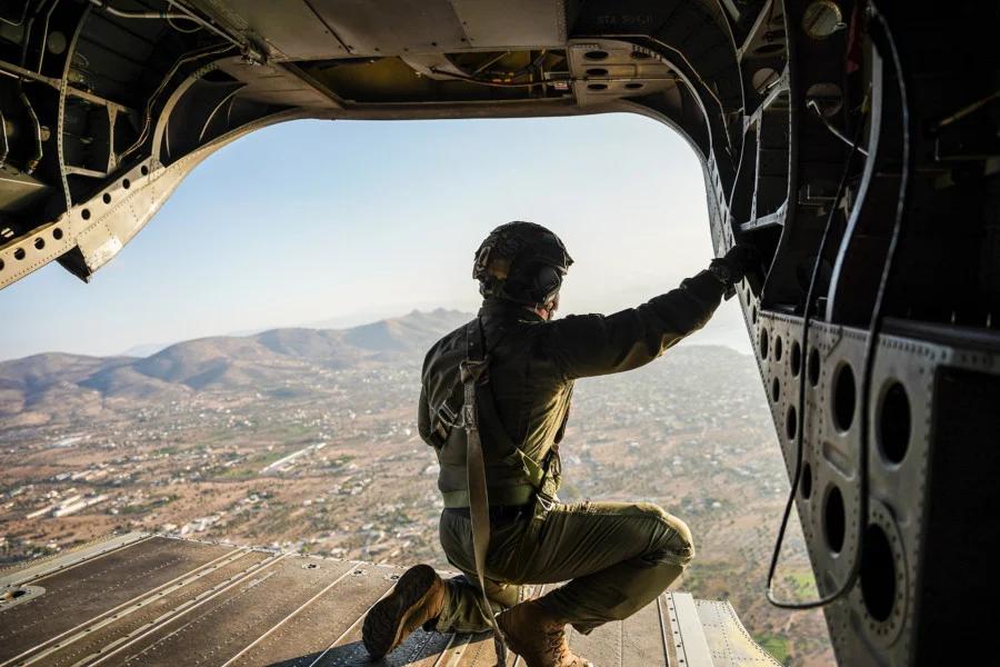 Ο Αρχηγός ΓΕΕΘΑ, Στρατηγός Δημήτριος Χούπης, πραγματοποίησε άλμα με αλεξίπτωτο από το ελικόπτερο CH-47D Chinook.