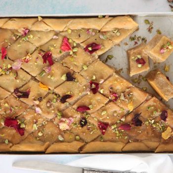Ο περσικός μπακλαβάς ξεχωρίζει από κάθε άλλο που έχετε γευτεί. Η γέμισή του αποτελείται από αμύγδαλα, ενώ το άρωμα του αναδεικνύεται με ροδόνερο και μοσχολέμονο.