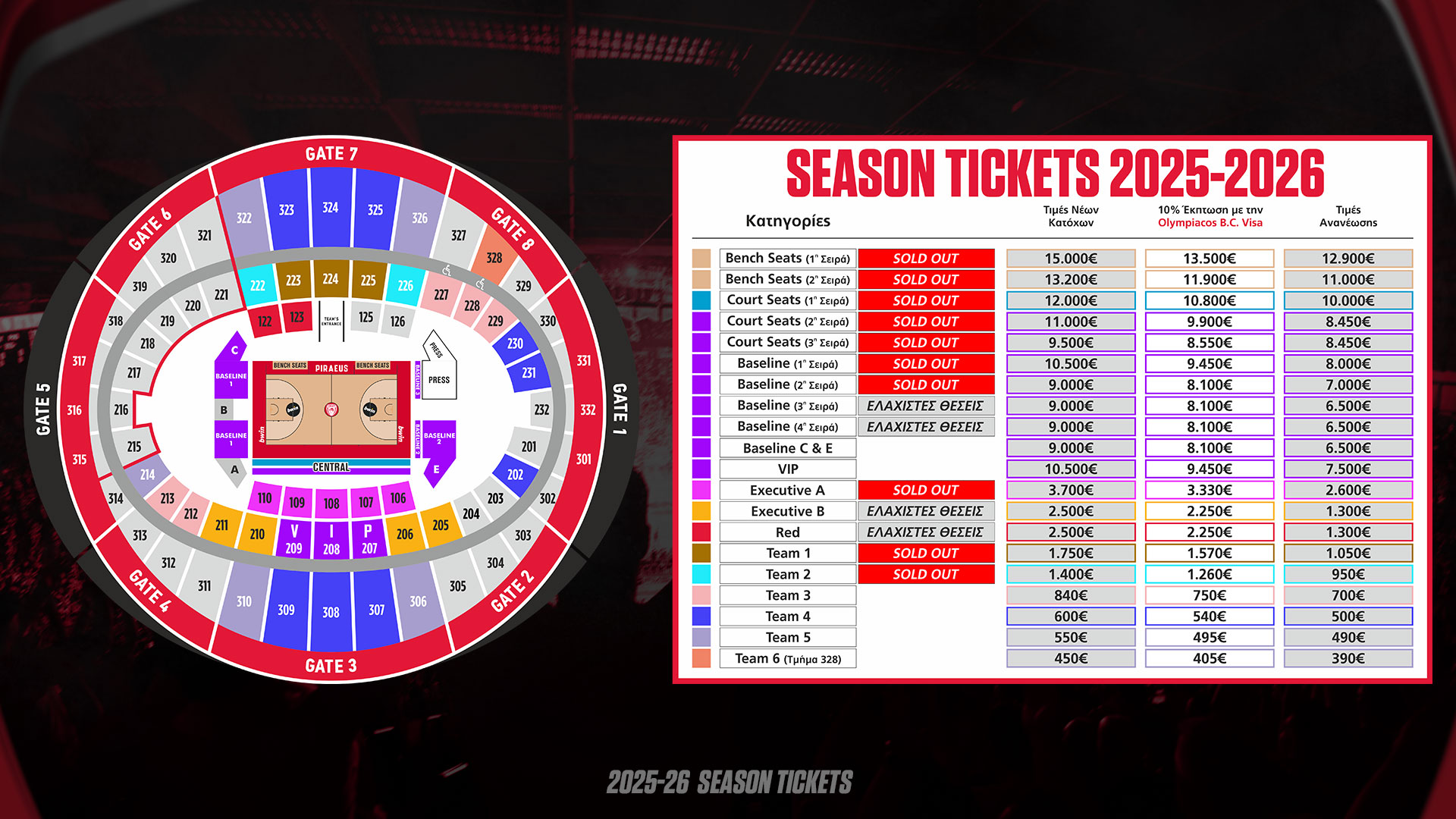 Ωστόσο το εισιτήριο διαρκείας περιλαμβάνει όλους τους εντός έδρας αγώνες EuroLeague και τους αγώνες μόνο με τον Παναθηναϊκό AKTOR για την STOIXIMAN GBL (και Play Offs).