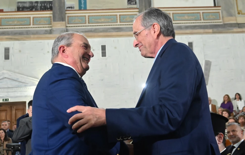 Ομιλία – «χείμαρρος» ο πρώην Πρωθυπουργός, Κώστας Καραμανλής, στην Παλιά Βουλή με παρόντα και τον Αντώνη Σαμαρά