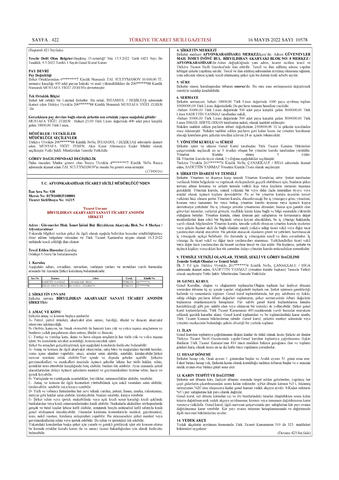 Τελικά, όλες οι μετοχές της εταιρείας μεταβιβάστηκαν στον Μουσταφά Ζερέν, σύμφωνα με το εμπορικό μητρώο.