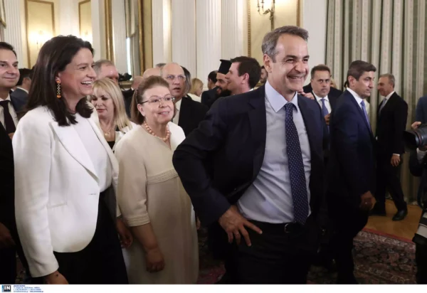 Χαμόγελα και θερμούς εναγκαλισμούς καταγράφουν τα πλάνα από την ορκωμοσία της κυβέρνησης του Κυριάκου Μητσοτάκη στο Προεδρικό Μέγαρο, η οποία πραγματοποιήθηκε το μεσημέρι της Τρίτης (26.06.23). Υπό το μήνυμα του πρωθυπουργού για «μεγάλες αλλαγές και μεταρρυθμίσεις» στη νέα 4ετία, ήδη από αύριο, Τετάρτη οι υπουργοί πιάνουν «σκληρή δουλειά», αμέσως μετά το πρώτο Υπουργικό Συμβούλιο.