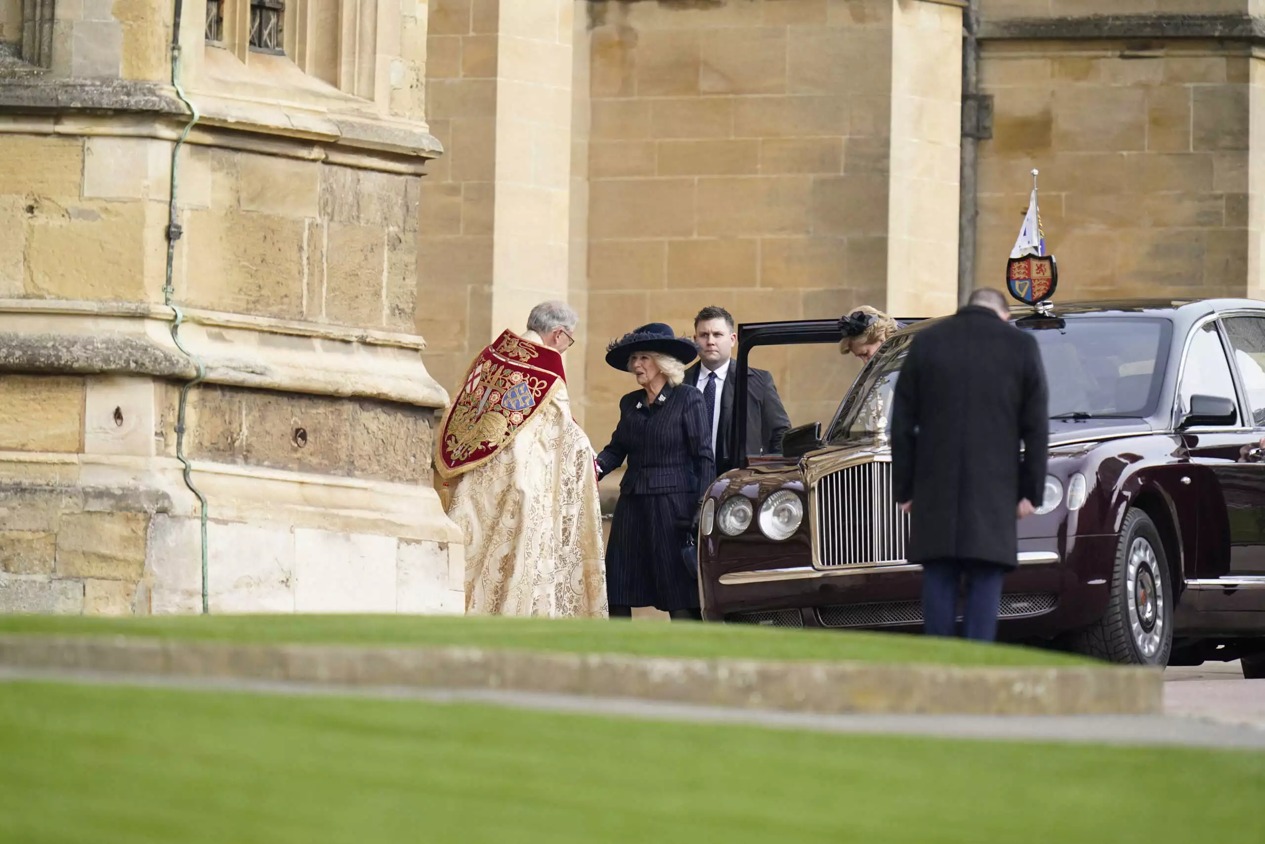 Η βασίλισσα Καμίλα έφτασε μαζί με την τέως βασίλισσα Άννα Μαρία. Στην τελετή βρίσκεται και η πριγκίπισσα Άννα… Η οποία είχε εκπροσωπήσει τη βασιλική οικογένεια της Βρετανίας και στην κηδεία του τέως βασιλιά.
