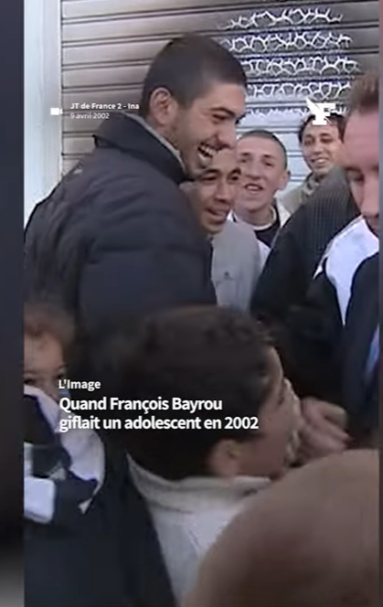 Το περιστατικό σημειώθηκε το 2002, κατά τη διάρκεια της προεκλογικής του καμπάνιας για την προεδρία της Γαλλίας. Όταν ήταν υποψήφιος με την Ένωση για τη Γαλλική Δημοκρατία (UDF). Ενώ επισκεπτόταν μια φτωχογειτονιά στο Στρασβούργο για να τονίσει το λαϊκό του προφίλ, συνέβη το απρόοπτο. Ένα 11χρονο αγόρι τον πλησίασε και, όπως φαίνεται, τον ενόχλησε. Ο Μπαϊρού, μπροστά στις κάμερες, το χαστούκισε λέγοντάς του: «Μην πειράζεις τις τσέπες μου». Μετά την κατακραυγή, δικαιολόγησε την πράξη του. Λέγοντας πως έδωσε στο αγόρι «ένα μάθημα, όπως έκανε κάθε πατέρα».