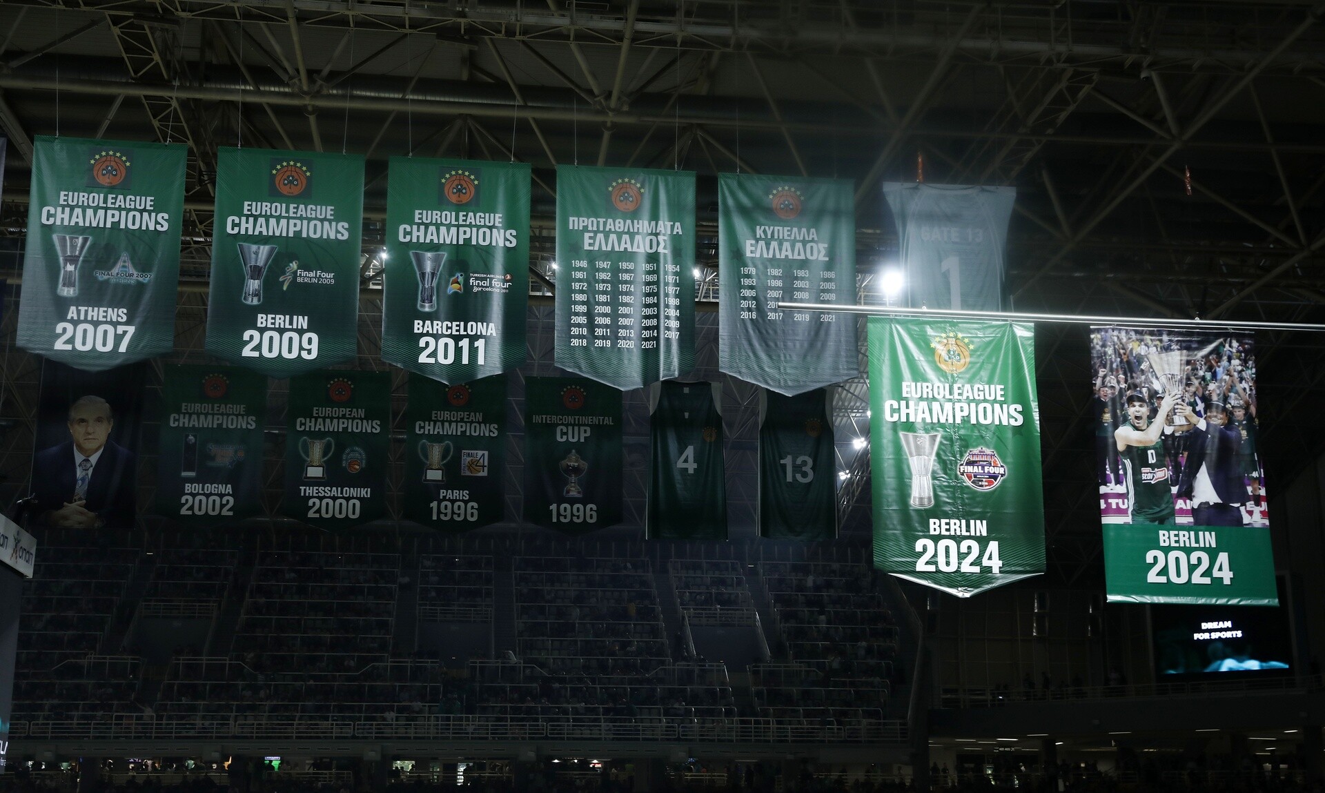 Το λάβαρο με τις εικόνες του Εργκίν Αταμάν και του Κώστα Σλούκα, από την κατάκτηση του ευρωπαϊκού πρωταθλήματος στο Βερολίνο, πλέον έχει τοποθετηθεί στη θέση του.