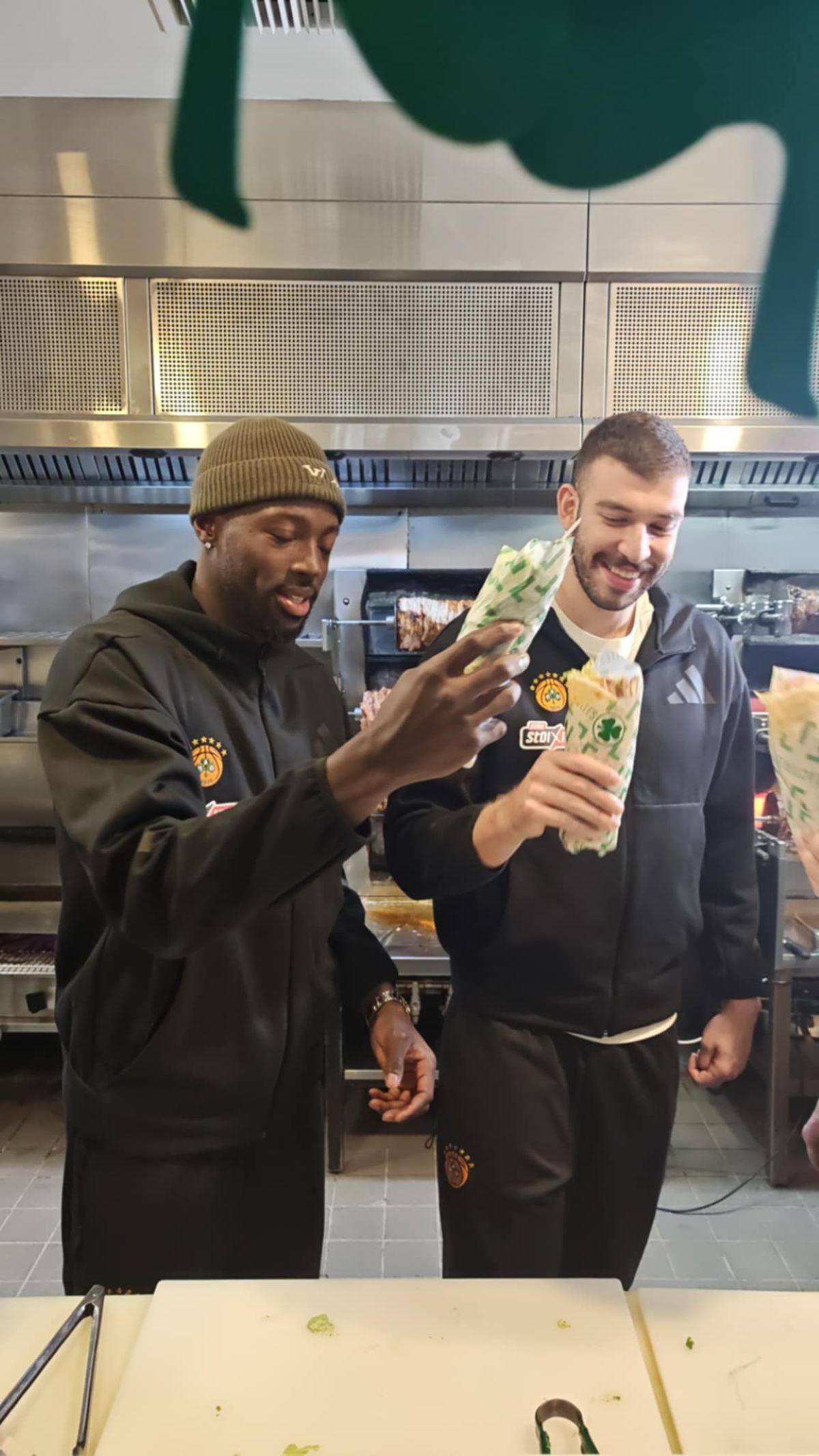 Οι δύο παίκτες ανέλαβαν τον ρόλο του… ψήστη, τυλίγοντας το ειδικό PAO Souvlaki, μια δημιουργία αφιερωμένη στην παρουσία του Παναθηναϊκού στην Αυστραλία. Με τη βοήθεια του σεφ, φόρεσαν ποδιές, μπήκαν στην κουζίνα και διασκέδασαν δοκιμάζοντας τις ικανότητές τους στη μαγειρική. Στο τέλος, απόλαυσαν τα δικά τους σουβλάκια. Χαρίζοντας χαμόγελα στους ομογενείς φιλάθλους που βρέθηκαν εκεί.