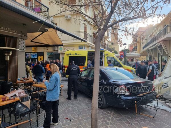 Πανικός επικράτησε σε καφετέρια στο Κέντρο της πόλης των Χανίων όταν ένα αυτοκίνητο έπεσε πάνω στα τραπεζοκαθίσματα τραυματίζοντας δύο άτομα.