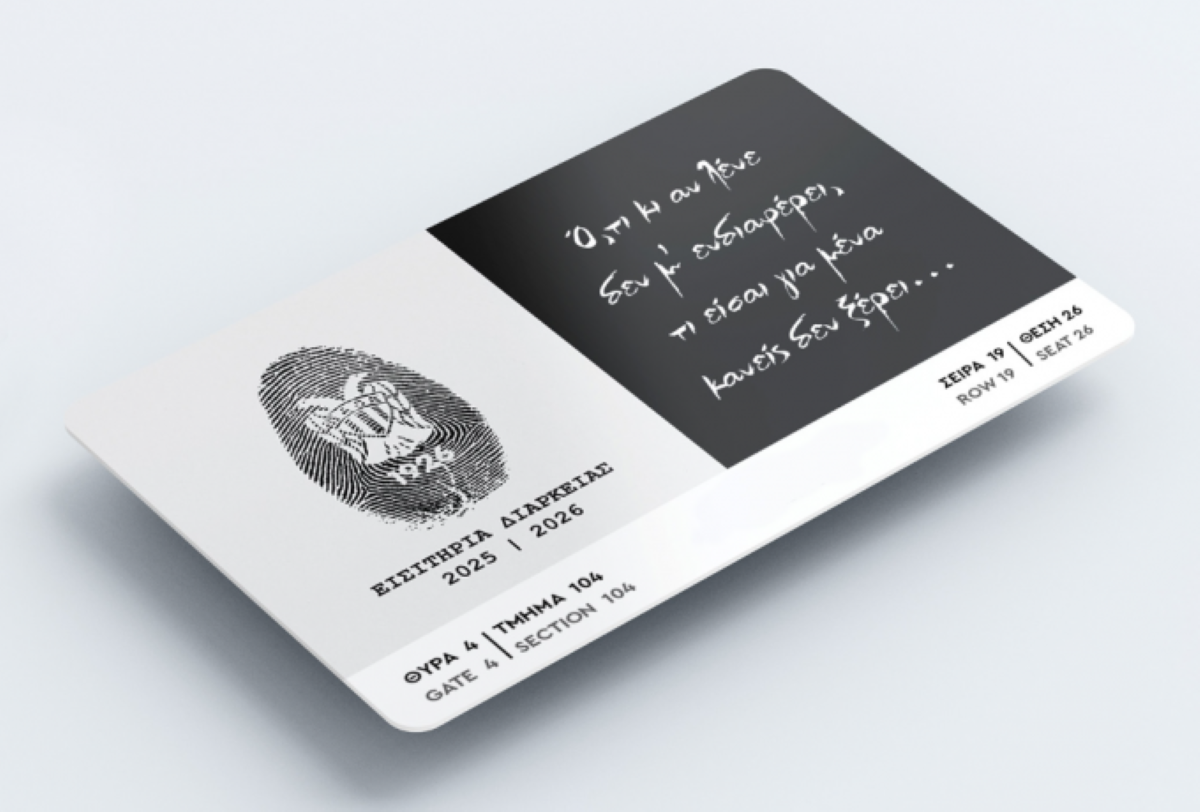 Το πρώτο εντός έδρας παιχνίδι του ΠΑΟΚ για τη νέα σεζόν θα γίνει το Σάββατο 11 Οκτωβρίου 2025. Στις 19:00, απέναντι στον Ηρακλή. Η είσοδος στο γήπεδο θα γίνεται αποκλειστικά με ηλεκτρονικό εισιτήριο μέσω της πλατφόρμας gov.gr. Η νέα συλλεκτική κάρτα δεν έχει λειτουργική χρήση, αλλά αποκτά ιδιαίτερη συναισθηματική και ιστορική αξία, ειδικά ενόψει της συμπλήρωσης 100 χρόνων από την ίδρυση του Συλλόγου.