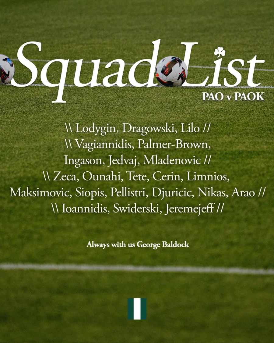 Ενισχυμένος θα παραταχθεί ο Παναθηναϊκός στην καθοριστική αναμέτρηση με τον ΠΑΟΚ. Καθώς ο Φώτης Ιωαννίδης επιστρέφει μετά την τιμωρία του στον αγώνα με την ΑΕΚ, και ο Γιώργος Βαγιαννίδης ξεπέρασε το πρόβλημα τραυματισμού που τον ταλαιπωρούσε. Οι δύο βασικοί ποδοσφαιριστές συμπεριλαμβάνονται στην αποστολή που ανακοίνωσε ο Ρουί Βιτόρια για το παιχνίδι.