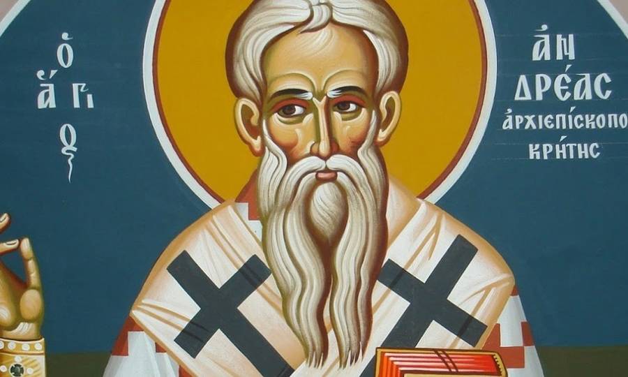 Σύμφωνα με τον συναξαριστή, ο Άγιος Ανδρέας, ένας από τους σημαντικότερους εκκλησιαστικούς ποιητές, γεννήθηκε στη Δαμασκό από ευσεβείς γονείς, τον Γεώργιο και τη Γρηγορία.