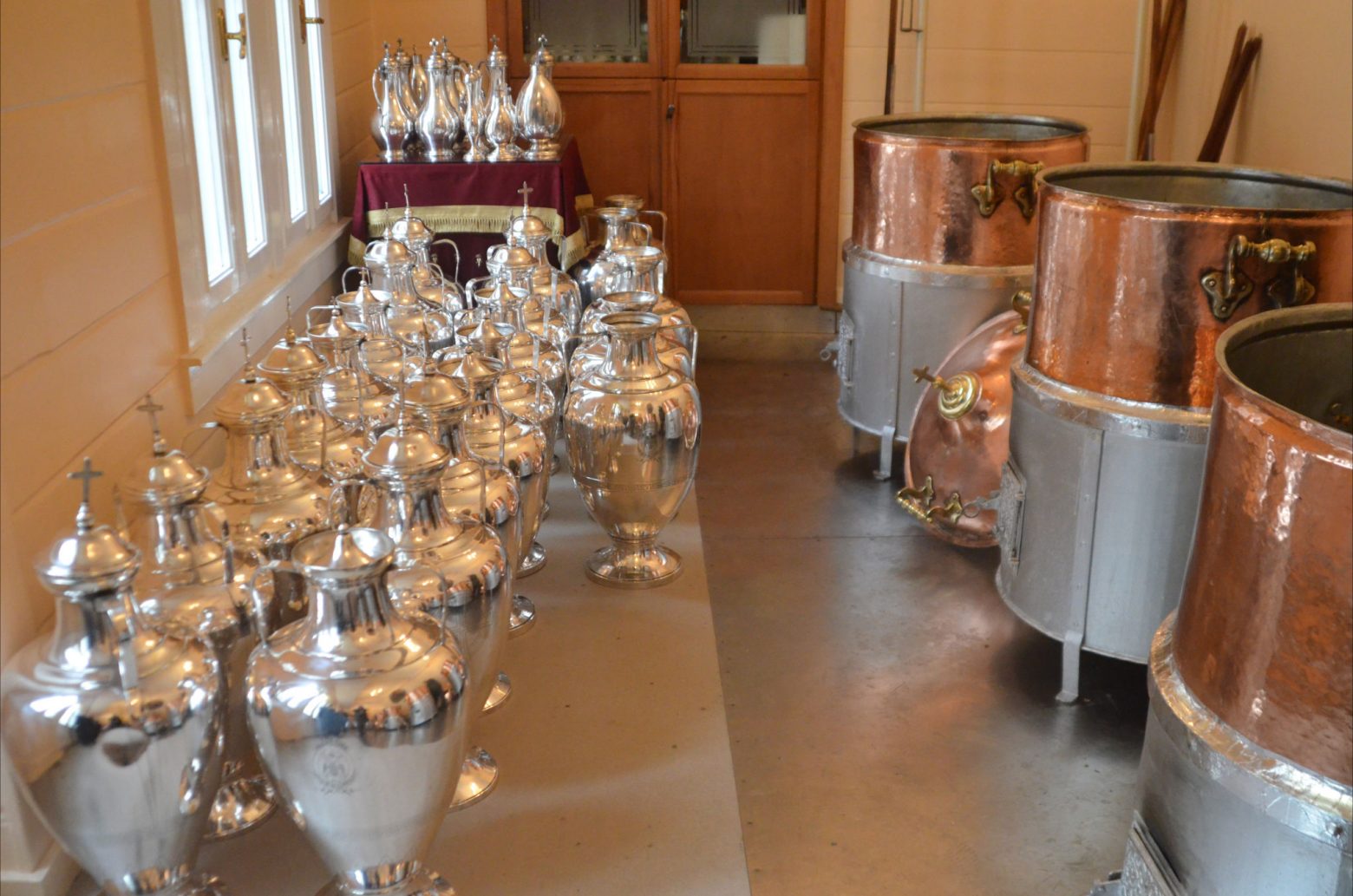 «Υπάρχουν επτά θερμαινόμενοι χάλκινοι περιέκτες (λέβητες/καζάνια) που χρησιμοποιούνται για την έψηση του Αγίου Μύρου, τους οποίους δώρισε το 1807 στο Πατριαρχείο το Σωματείο Αργυραμοιβών (σαράφηδων). Φέτος θα χρησιμοποιηθούν λιγότεροι (τέσσερις ή πέντε από αυτούς). Φροντίζουμε να υπάρχει σταθερή θερμοκρασία για να ζεσταίνει το περιεχόμενο των λεβήτων, στους οποίους πρώτα βάζουμε το ελαιόλαδο και μετά το κρασί και στη συνέχεια βάζουμε, με τη σειρά: το ανθόνερο, το ροδόνερο και τα διάφορα φυτικής προέλευσης εκχυλίσματα, τα οποία συν τω χρόνω αναδεύονται με τις παραδοσιακές ξύλινες κουτάλες. Αυτό το κάνουν οι κοσμήτορες.