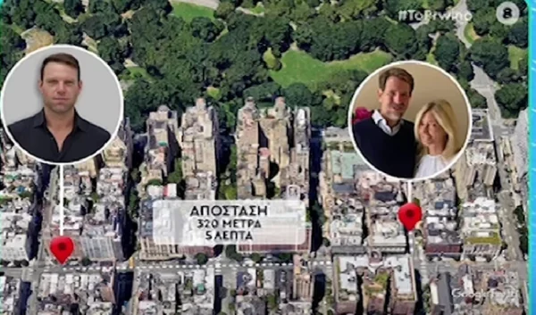 Ενδιαφέρον ωστόσο έχουν τα πρόσωπα τα οποία ζουν στην ίδια γειτονιά, αφού όπως αποκάλυψε το ρεπορτάζ, σε απόσταση 320 μέτρα. Δηλαδή μόλις 5 λεπτά με τα πόδια, ζουν ο Παύλος και η Μαρί Σαντάλ.