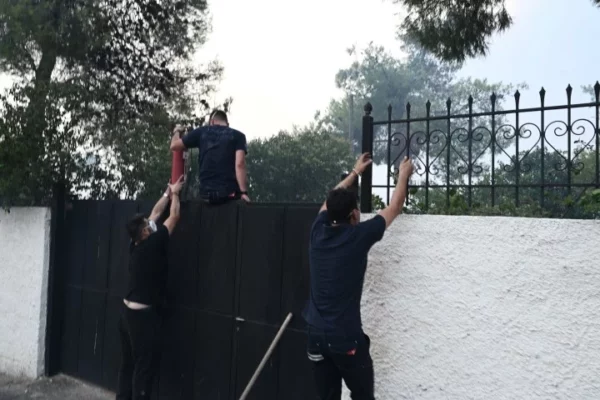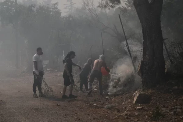 Οι πολίτες προσπαθούν να περισώσουν ό,τι μπορούν με τα μέσα που διαθέτουν καθώς οι φλόγες είναι 100 μέτρα από τις αυλές των σπιτιών τους.