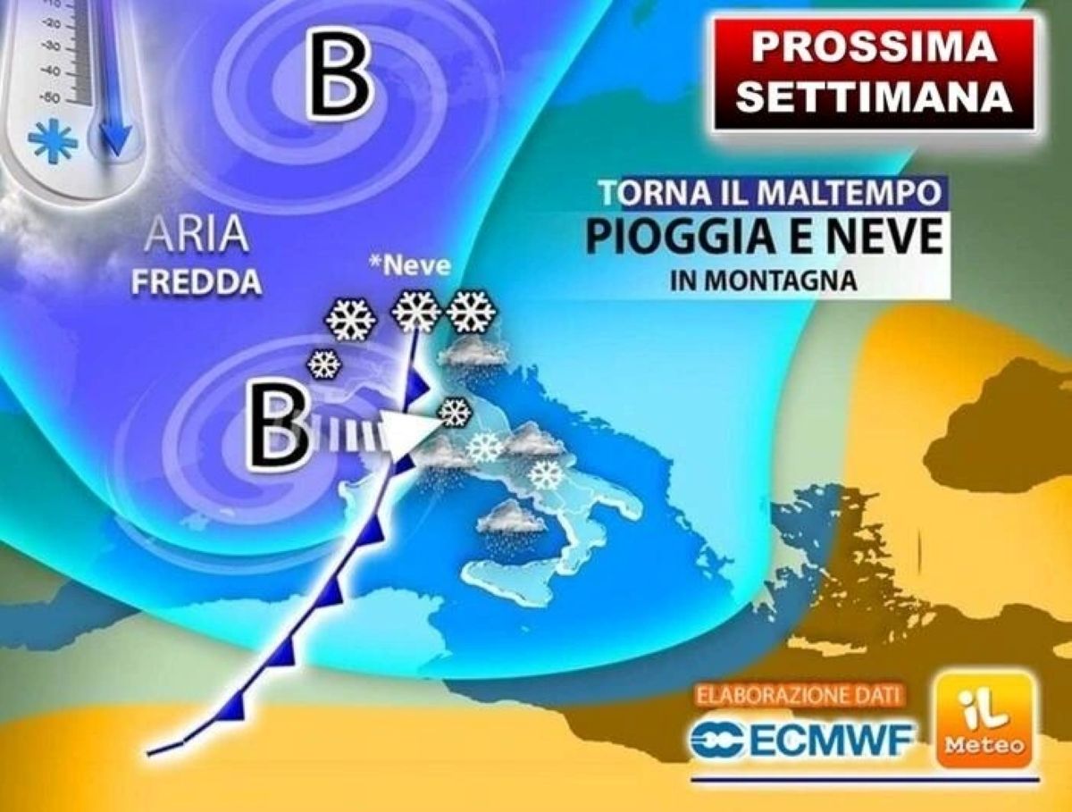 Τη Δευτέρα 20/10 το μέτωπο φέρνει εκτεταμένες βροχές στην Ιταλία και πτώση θερμοκρασίας, με τα πρώτα χιόνια στις Άλπεις (1.800μ.).