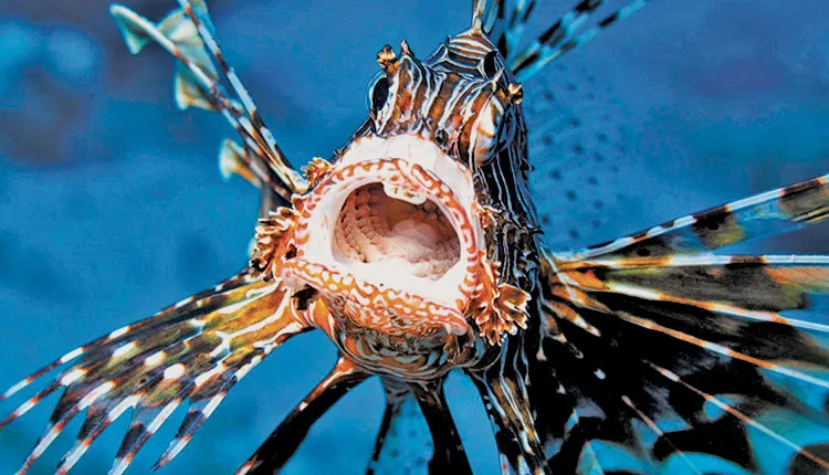 Το λεοντόψαρο (επιστηµονική ονοµασία Pterois miles), το οποίο ενδηµεί στον Ινδικό Ωκεανό, είναι δηµοφιλές έκθεµα τροπικών ενυδρείων, καθώς εντυπωσιάζει µε τους έντονους κόκκινους, κίτρινους και µαύρους χρωµατισµούς, αλλά και την «πανοπλία» του από µυτερά αγκάθια που εκλύουν δηλητήριο. Αυτά αποτελούν τόσο αµυντικό όσο και επιθετικό µηχανισµό, καθώς από τη µία αποτρέπουν δυνητικούς θηρευτές και από την άλλη αιχµαλωτίζουν τα θηράµατα. Η επαφή του ανθρώπου µε τα αγκάθια µπορεί να αποβεί από επώδυνη έως και θανατηφόρα, καθώς υπάρχει κίνδυνος να προκληθεί αλλεργικό σοκ.