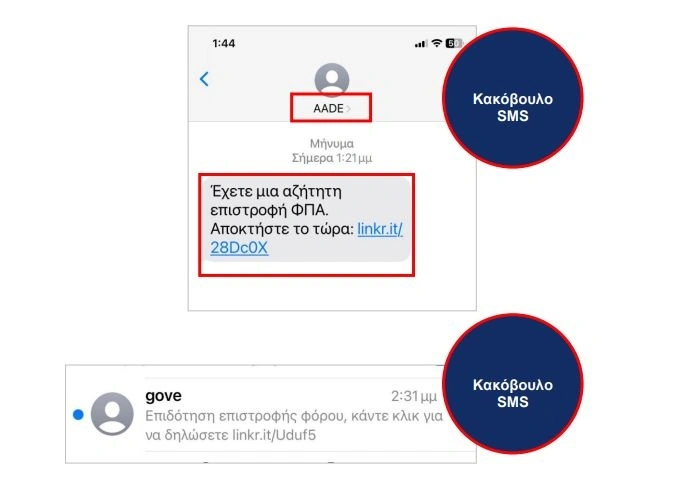 Παρουσιάζονται ως αποστολές από την ΑΑΔΕ ή άλλες έμπιστες αρχές, όπως το gov.gr.