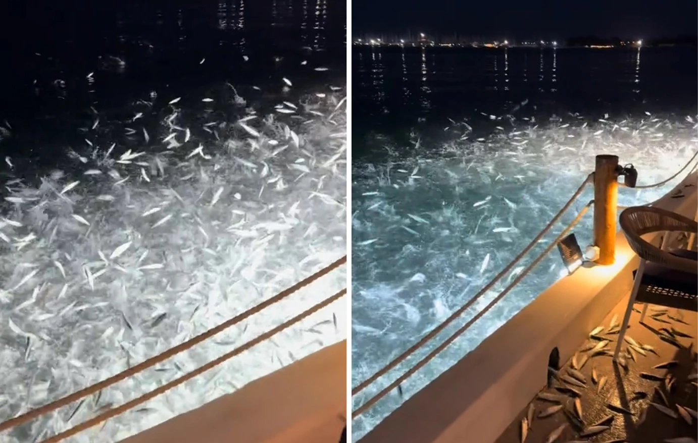 Ένα τοπικό εστιατόριο, που βρίσκεται δίπλα στη θάλασσα, ανέβασε βίντεο στο TikTok με αυτή την «ψαρόβροχη». Προκαλώντας ποικίλες αντιδράσεις και ερωτήματα στο διαδίκτυο. Κάποιοι θεώρησαν ότι η πανσέληνος έπαιξε ρόλο, ενώ άλλοι απέδωσαν το φαινόμενο στον τεχνητό φωτισμό.