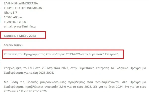 Στον «αέρα» βρίσκονται τα επιπρόσθετα προεκλογικά μέτρα της κυβέρνησης Μητσοτάκη. Και αυτό φαίνεται και στο Ελληνικό Πρόγραμμα Σταθερότητας για τα έτη 2023-2026, το οποίο υποβλήθηκε στην Ευρωπαϊκή Επιτροπή, το Σάββατο 29 Απριλίου.