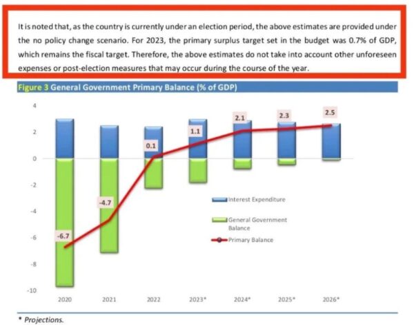 Σταδιακή δημοσιονομική σύσφιξη (3,3 δις από το 2024), σε συνδυασμό με «μεταρρυθμίσεις»… (=συνέχιση του ξεπουλήματος της δημόσιας περιουσίας και των πλειστηριασμών της ιδιωτικής).