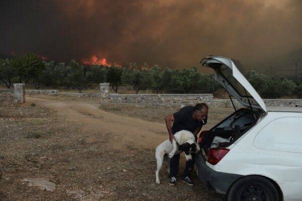Λίγο μετά τις 15.00 η φωτιά έφτασε μία ανάσα από σπίτια στη Νέα Ζωή στη Μάνδρα (ήδη έχει κάψει τα πρώτα σπίτια), με τον κόσμο να τρέχει να γλιτώσει. Παρόμοιες εικόνες και στον Άγιο Χαράλαμπο, εκεί που ήδη αστυνομικοί έχουν απομακρύνει παιδιά από σπίτια και κρατώντας τα στην αγκαλιά τους τα σώζουν από τις φλόγες.