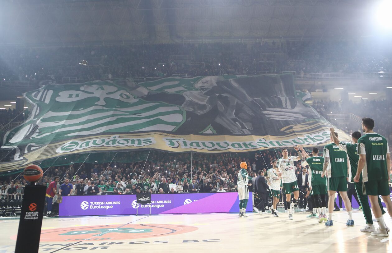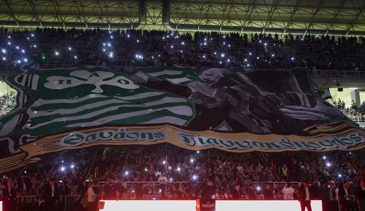 Οι φίλοι του «τριφυλλιού» που γέμισαν το ΟΑΚΑ, ύψωσαν ένα γιγαντιαίο μάλιστα πανό στην κεντρική εξέδρα, το οποίο απεικόνιζε τον… Θανάση Γιαννακόπουλο με το τρόπαιο της Ευρωλίγκας στα χέρια και επίσης τη σημαία του Παναθηναϊκού.