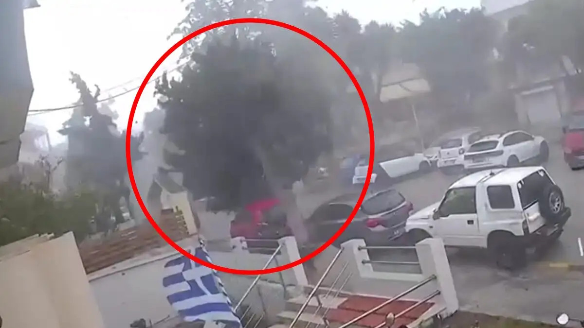 Ένα βίντεο από κάμερα ασφαλείας κατέγραψε τη στιγμή που ο ανεμοστρόβιλος χτύπησε, δείχνοντας την ένταση της καταστροφής.