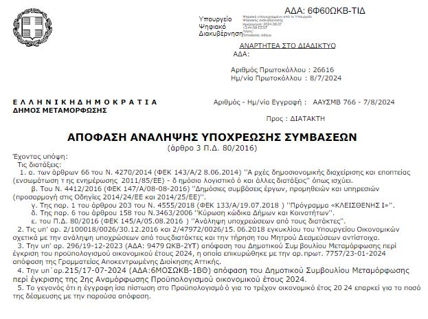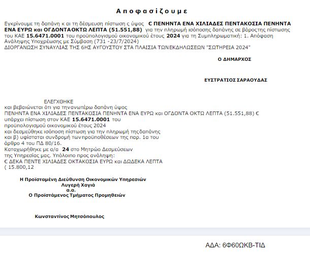 Σύμφωνα με τα έγγραφα που δημοσιεύθηκαν στη Διαύγεια, ο Δήμος Μεταμόρφωσης πλήρωσε 51.551 ευρώ για τη συναυλία που πραγματοποιήθηκε στις 6 Αυγούστου, στο πλαίσιο των εκδηλώσεων «ΣΩΤΗΡΕΙΑ 2024».