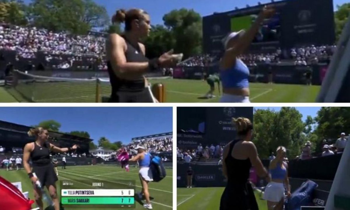 Αμέσως μετά την καθιερωμένη χειραψία στο φιλέ, η Πουτίντσεβα φέρεται να εξέφρασε παράπονα προς τη Σάκκαρη. Η Ελληνίδα τενίστρια ανταπέδωσε άμεσα, ζητώντας εξηγήσεις. Με τους τόνους να ανεβαίνουν γρήγορα. Σε μια στιγμή έντασης, η Σάκκαρη ακούστηκε να λέει στην αντίπαλό της: «Κανείς δεν σε συμπαθεί».