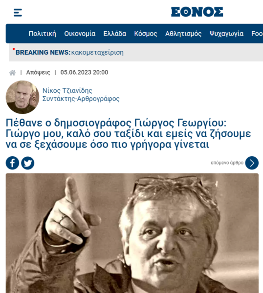 Θύελλα αντιδράσεων έχει προκαλέσει το προσβλητικό άρθρο για τον Γιώργο Γεωργίου που δημοσιεύθηκε την ημέρα του θανάτου του δημοσιογράφου.
