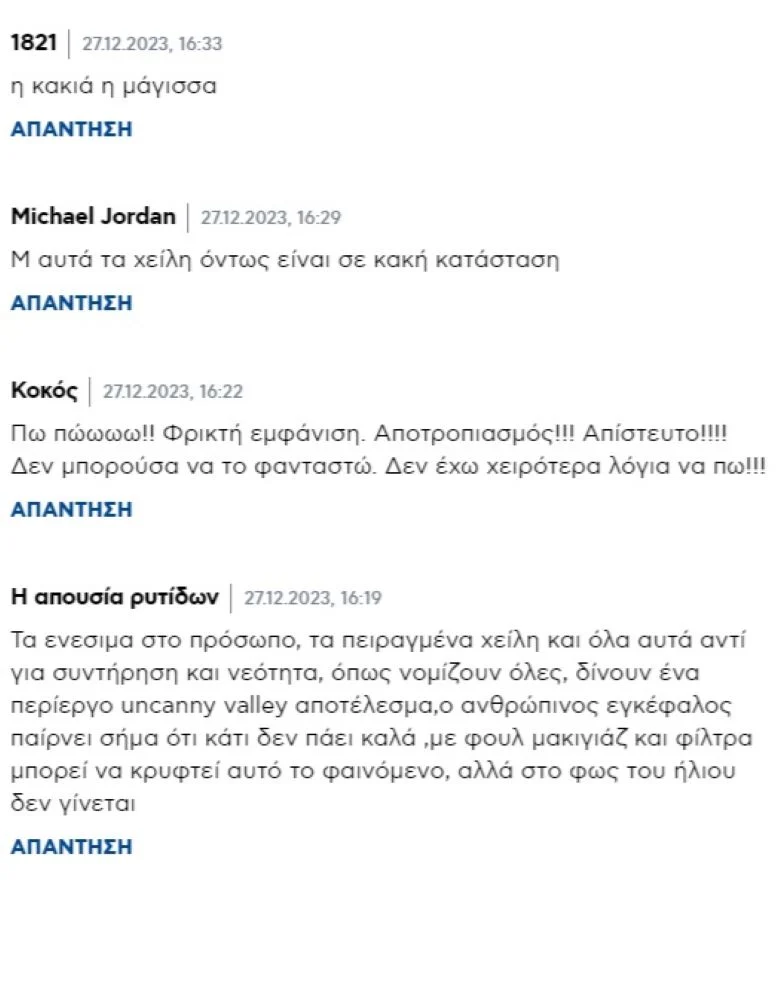 Δυστυχώς κάποιοι δεν σέβονται τον πόνο μιας γυναίκας που πενθεί. Διαβάζουμε πολλά σχόλια που κατακρίνουν τις επεμβάσεις στο πρόσωπο της αγαπημένης τραγουδίστρια.