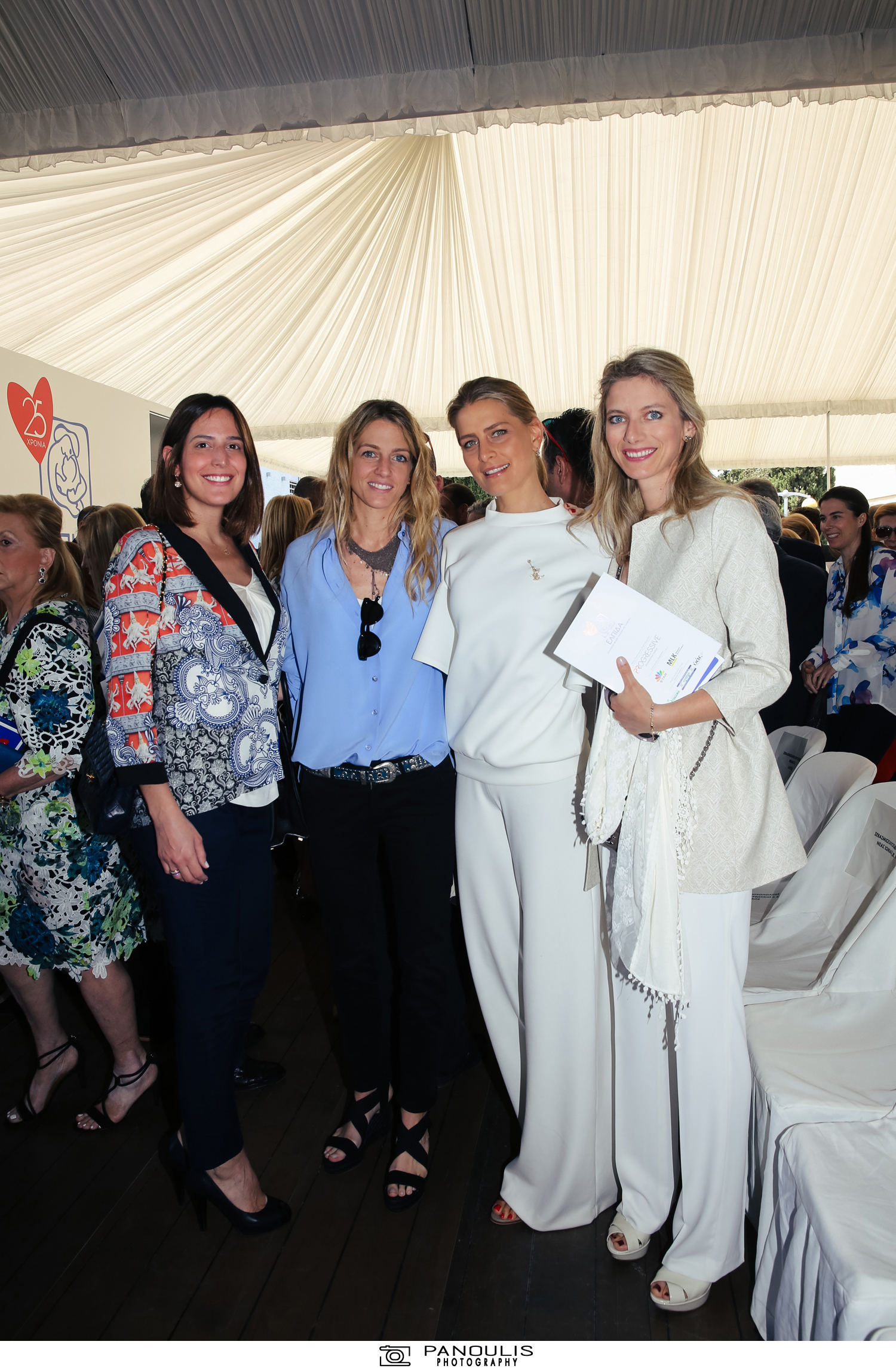 Στη συγκεκριμένη εικόνα, οι δύο κυρίες ποζάρουν χαμογελαστές δίπλα στην Αλεξία Βαρδινογιάννη και τον Σάκη Ρουβά , δημιουργώντας μια ζεστή και φιλική ατμόσφαιρα . Η εντυπωσιακή τους παρουσία μαγνητίζει τα βλέμματα, καθώς η κομψότητα και η φινετσάτα χαρακτηρίζουν τις ενδυματολογικές τους επιλογές. Με διακριτική πολυτέλεια και άψογο στυλ, αποδεικνύουν ότι η ευγένεια και η διακριτικότητα δεν μπορούν να συνυπάρξουν ακόμα και σε περιπτώσεις που το παρελθόν τους συνδέει με τον ίδιο άνθρωπο.