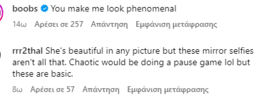 Μέσα σε λίγες ώρες, η ανάρτησή της συγκέντρωσε σχεδόν 4 εκατομμύρια likes, ενώ τα σχόλια των θαυμαστών της, που την αποθεώνουν, έδωσαν και πήραν.