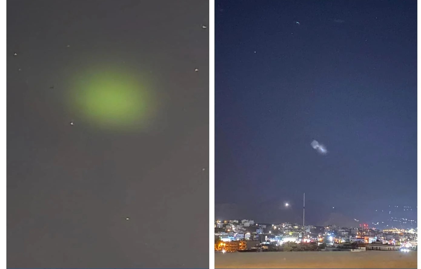 Αυτό ακριβώς συνέβη την Κυριακή το βράδυ (23/6) στην Κρήτη, όπου πολλοί κάτοικοι από διάφορα μέρη του νησιού, από τα ανατολικά μέχρι τα δυτικά, ανέφεραν ότι είδαν ένα ασυνήθιστο φως στον καθαρό ουρανό. Το φως αυτό κινείτο γρήγορα, φαινόταν σαν να “σπρώχνει” ή να κινείται μέσα σε ένα σύννεφο και, όταν εξαφανίστηκε, άφησε πίσω του ένα πράσινο “σύννεφο”.
